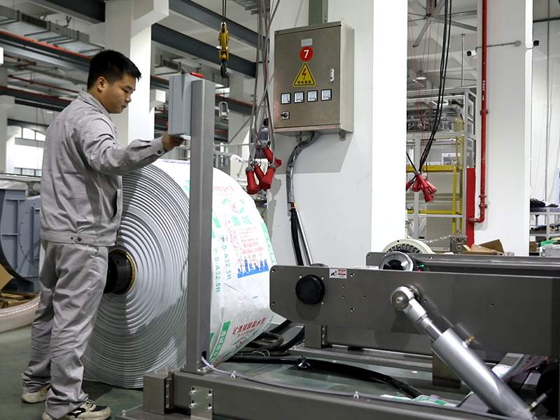 Разматывающее устройство оснащено тяговым двигателем для разматывания рулонов и магнитным порошковым тормозом для обеспечения стабильной размотки;