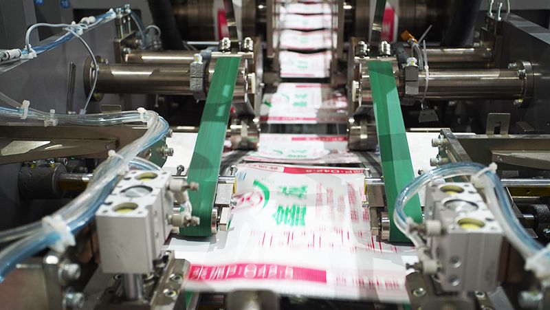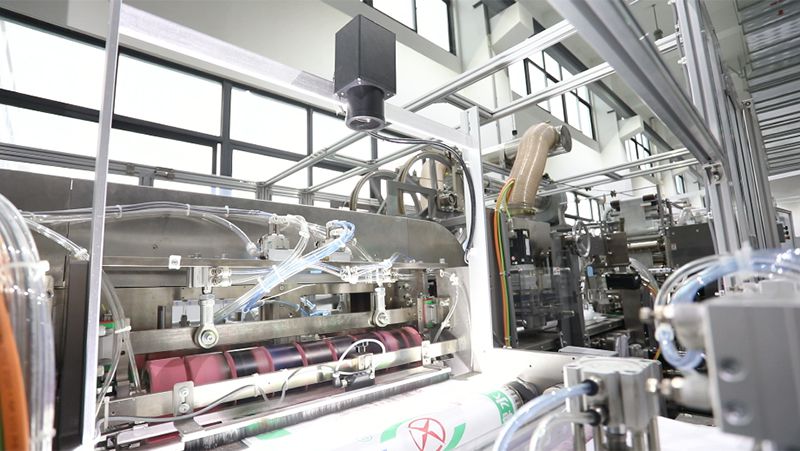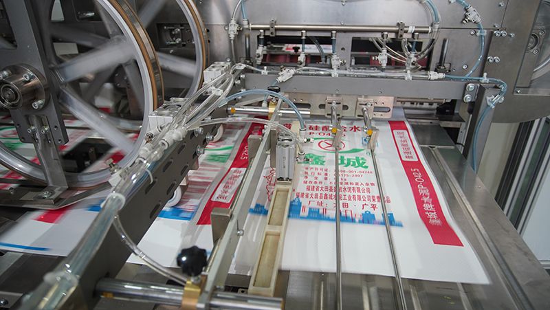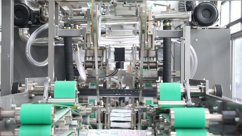 Машина работает со стабильной скоростью производства 100-120 мешков в минуту.