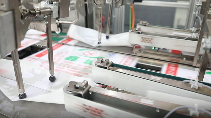 Установка для изготовления мешков включает в себя механизм подачи, регистратор цвета, систему резки и другие системы. Система резки обеспечивает точную производительность благодаря системе отслеживания длины среза и цветовой маркировки - двум методам, которые можно выбрать на экране;