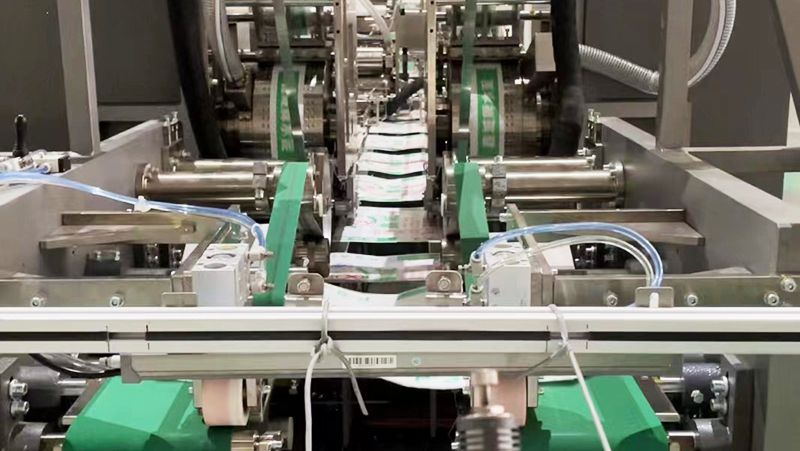 - Система направляющих полотен помогает точно приклеивать заплатки и обеспечивать транспортировку без отклонений благодаря устройству для предотвращения запутывания и системе отслеживания цветовых меток для обеспечения транспортировки, повышая уровень квалификации пакетов;