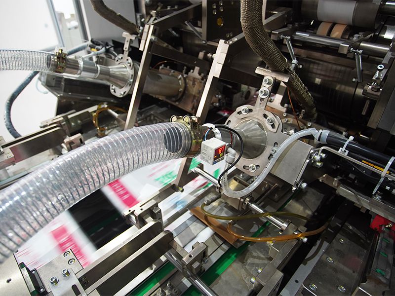 - Открывающее устройство приводится в действие одним серводвигателем и вентиляционным оборудованием с отрицательным давлением и опирается на зубчатые ремни для открывания 2-слойного ламинированного пакета под заданным углом и со стабильной скоростью;